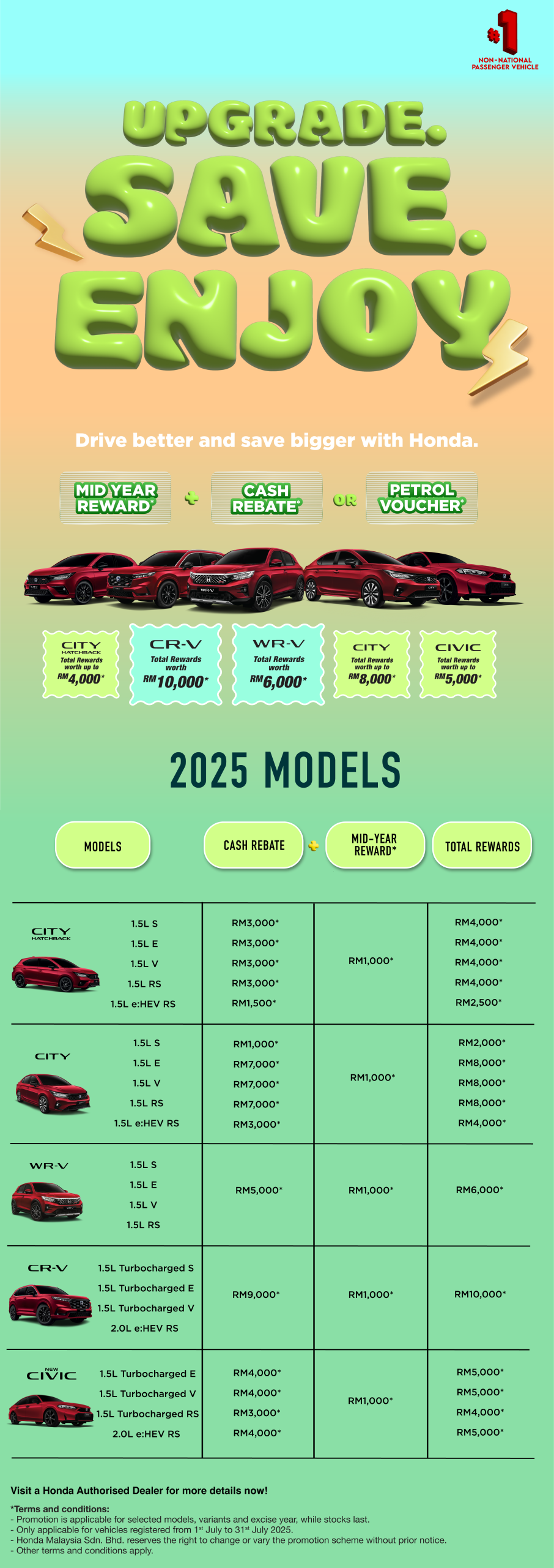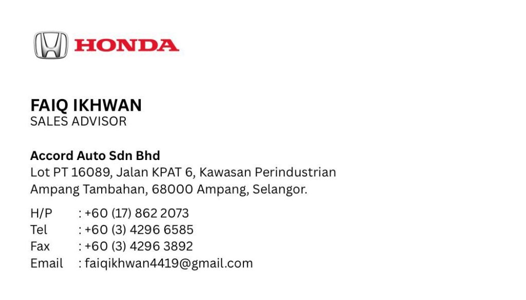 Looking for a new Honda? Claim cash rebates for up to RM12,000* and many more exciting promotions waiting for you. Additional RM1,500 if any of your family members are currently using a Honda. WhatsApp for more info!